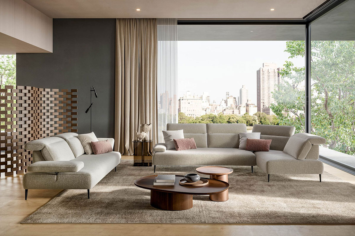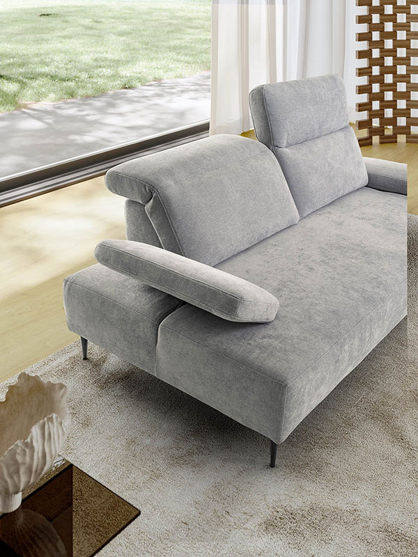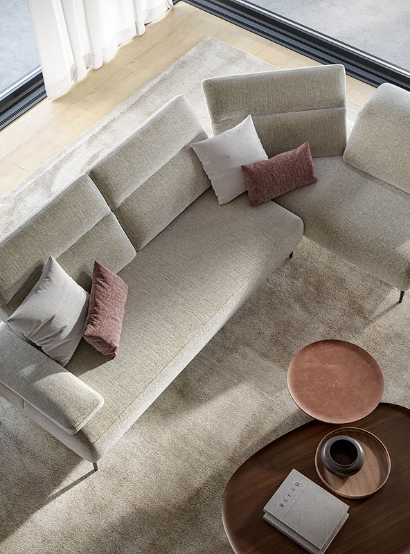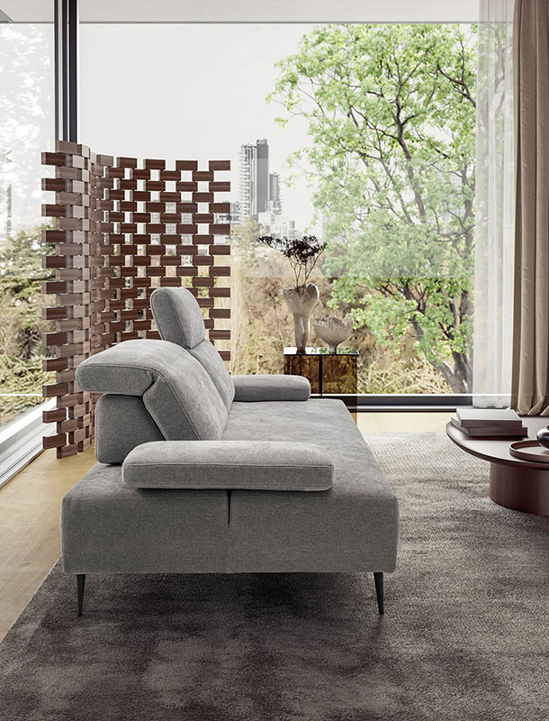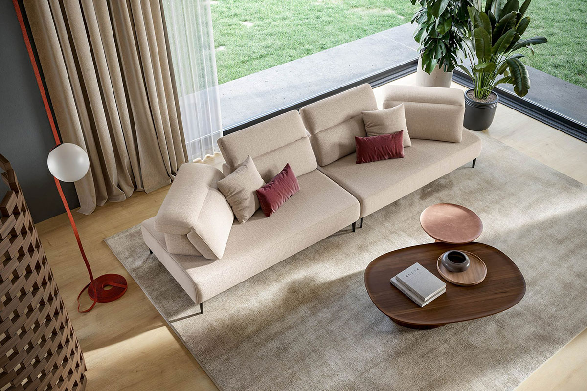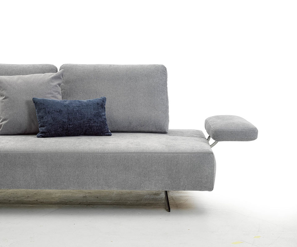 Gli schienali traslanti aumentano la profondità della seduta e i rivestimenti in tessuto lasciano spazio alla creatività e alla massima possibilità di personalizzazione.