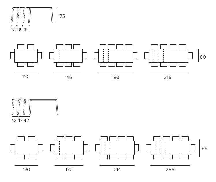 Proposto sia nella versione fissa che allungabile, Taurus va da 160 a 230 cm.