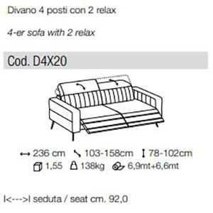 Come gli alti piedini di Egon slanciano e sorreggono una ricca composizione di volumi, così i poggiatesta reclinabili sostengono la parte alta del corpo, coccolandola con gli studiati poggiareni evidenziati dalle cuciture verticali che vivacizzano il rivestimento in tessuto o pelle. I pratici meccanismi relax poggiapiedi duplicano il comfort.
