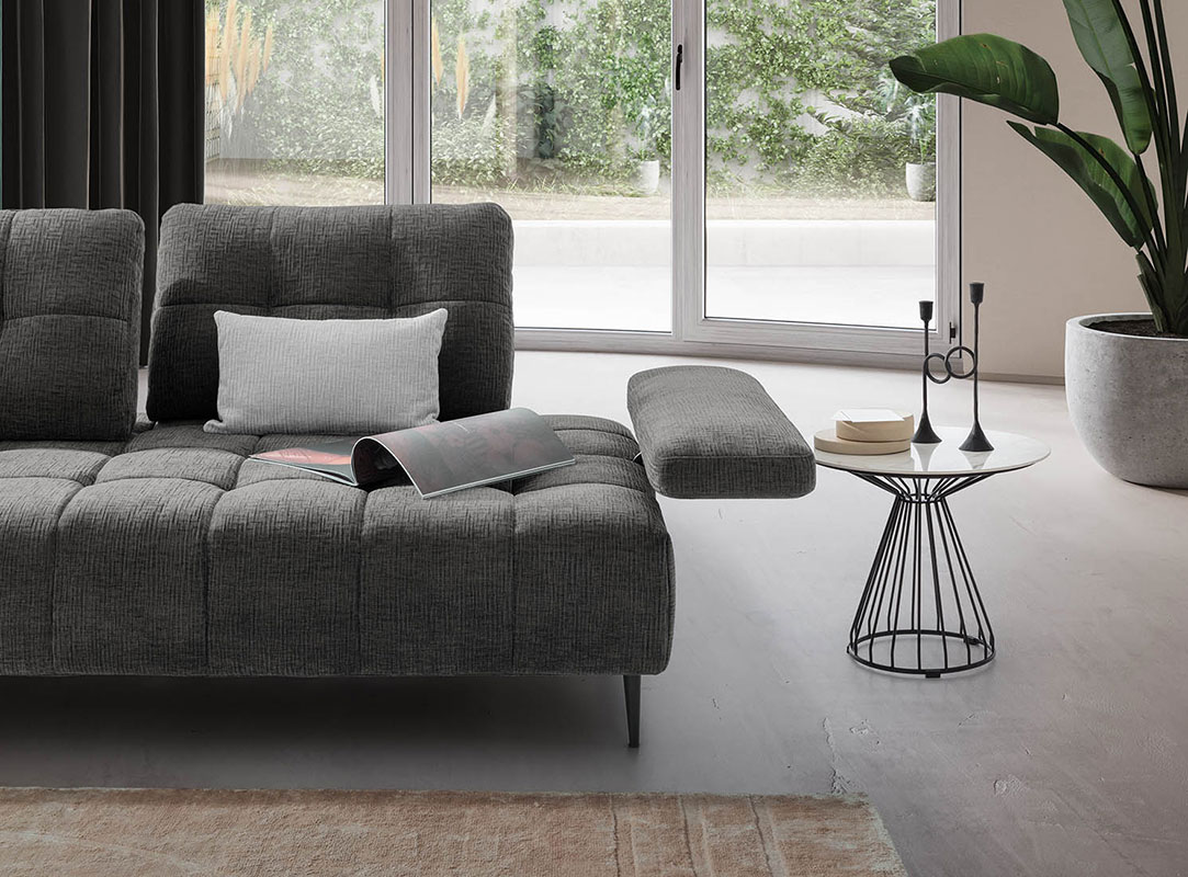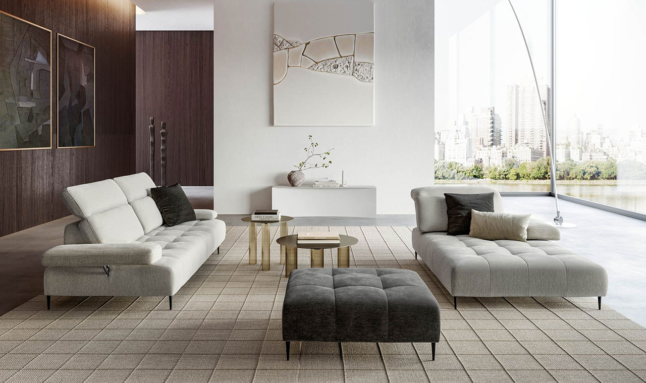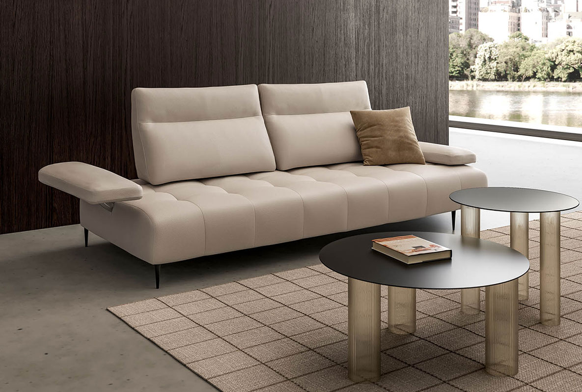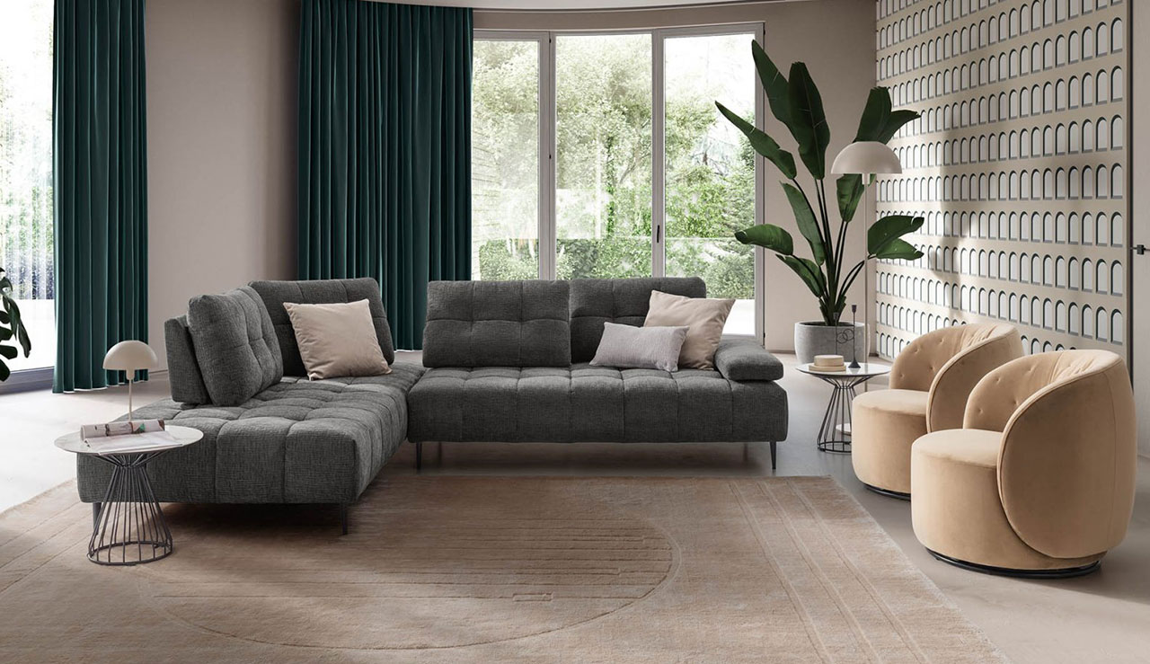 Eleganti trapuntature creano volumi accoglienti, gli schienali traslanti aumentano la profondità della seduta e i rivestimenti in tessuto o vera pelle lasciano spazio alla creatività e alla massima possibilità di personalizzazione.