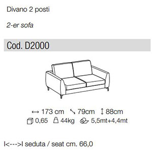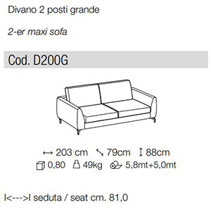 Essendo divani prodotti con imbottiture elastiche, le misure di ingombro possono variare entro i limiti compresi tra +/- 3 cm.