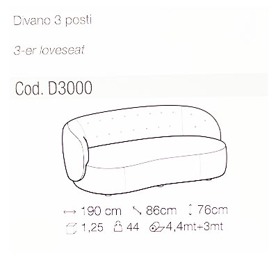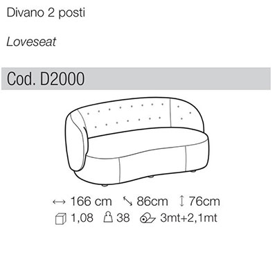 Divanetto a due posti dalla forma sinuosa con trapuntatura sullo schienale