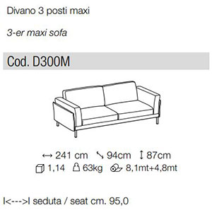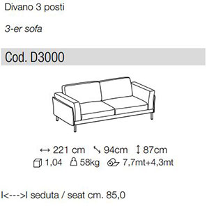 Essendo divani prodotti con imbottiture elastiche, le misure di ingombro possono variare entro i limiti compresi tra +/- 3 cm.