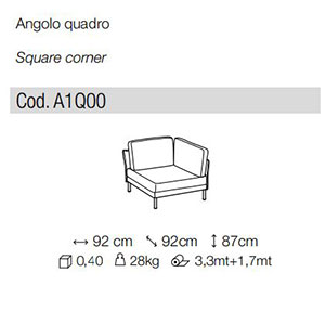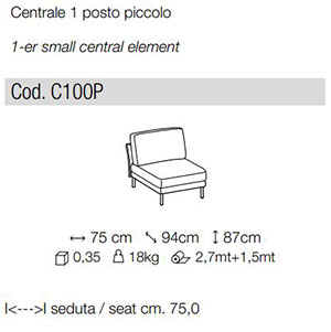 Profondita’ seduta cm. 57; Profondita’ seduta chaise longue cm. 130