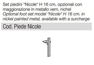 Piedino di serie mod. “Slim“ H 17 cm. in metallo verniciato nero. Disponibili altre tipologie. L’altezza dell’elemento è calcolata con piedino di serie.