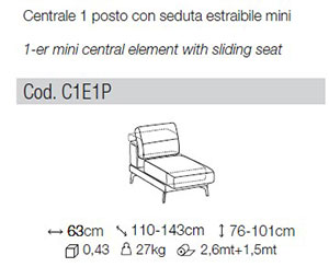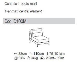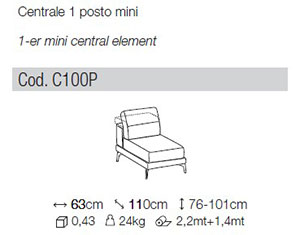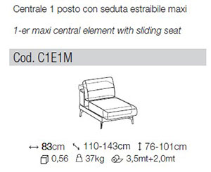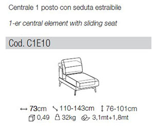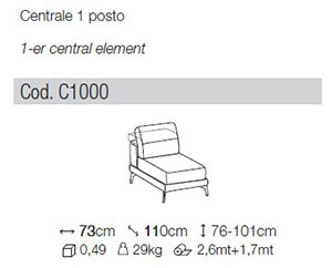 Altezza seduta da terra cm. 44 Profondita’ seduta cm. 58/91; Profondita’ seduta chaise longue cm. 116 Larghezza bracciolo cm. 23