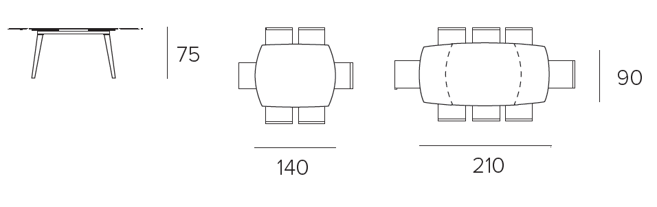 Un tavolo armonioso, con struttura lineare e piano rotondo, dal sapore romantico. Aiace, grazie ad un’allunga centrale, si trasforma: da quattro a otto posti, in poche mosse.