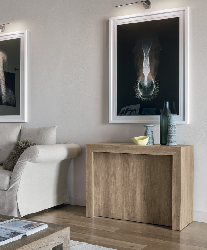Consolle o tavolo per ospitare parenti e amici? Entrambe! Pandora si allunga fino a 5 metri per accogliere tutti gli invitati. Praticità e design in un’unica soluzione. Laminato spazzolato o effetto legno: scegli la finitura di Pandora per dare un tocco rustico o moderno alla tua casa!