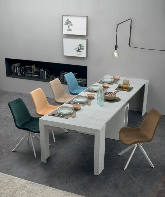 Semplice, ma di carattere. Un tavolo allungabile dalle linee moderne e pulite, disponibile in molteplici finiture che ben si sposano a qualunque ambiente.