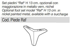 Piedino di serie mod. “Iron“ H 13 cm. disponibile in metallo nichel cromo o metallo cromato. Disponibili altre tipologie.