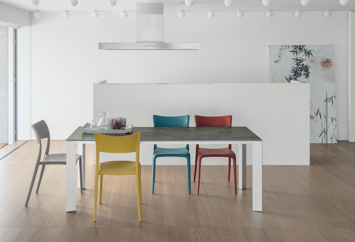 Un prodotto essenziale dal design semplice: Saturno è un tavolo allungabile pensato per la zona cucina. Le forme pulite lo rendono adatto a stili e contesti diversi.
