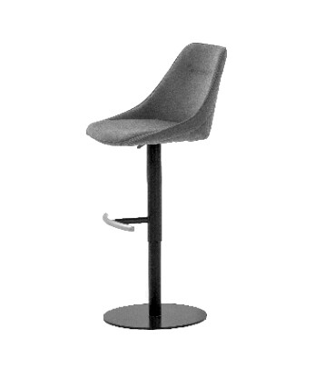 Linee dinamiche e confortevoli dialogano con la solida struttura di Bilbao. Uno sgabello da configurare, in tre versioni: regolabile in altezza, fisso o fisso con seduta girevole.