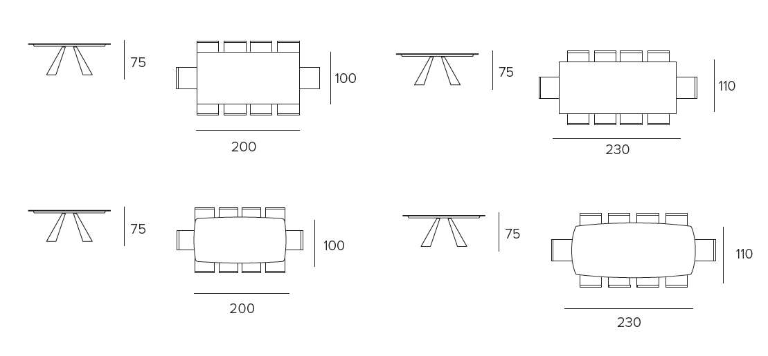 Un tavolo armonioso, con struttura lineare e piano rotondo, dal sapore romantico. Aiace, grazie ad un’allunga centrale, si trasforma: da quattro a otto posti, in poche mosse.