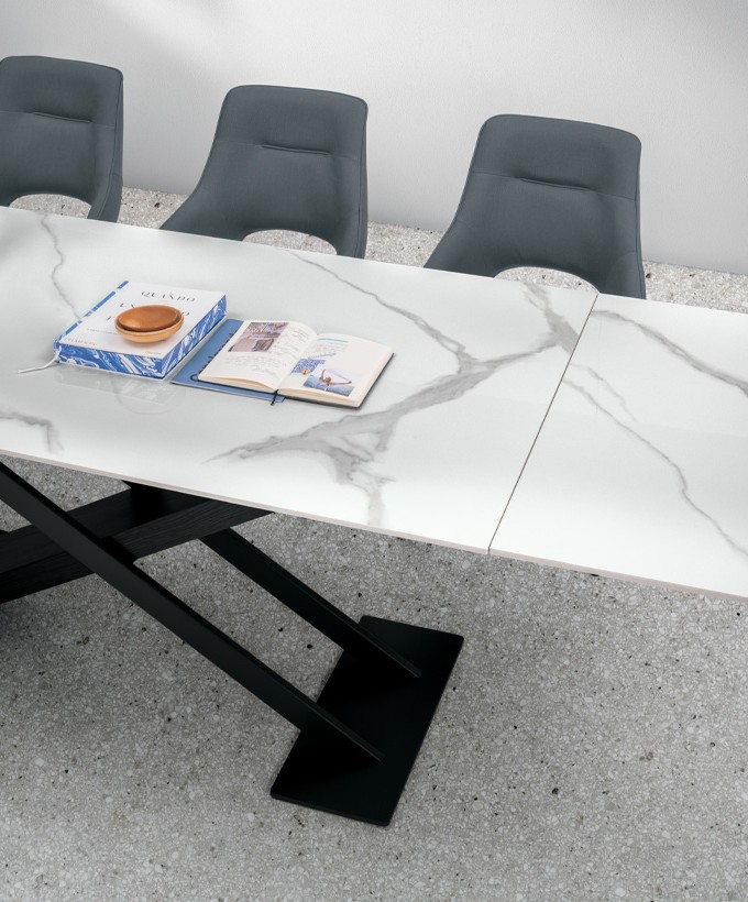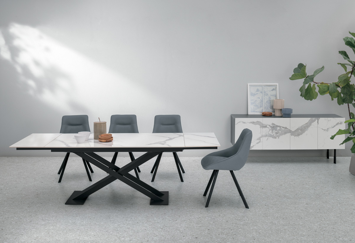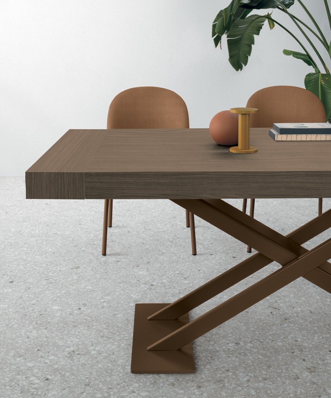 L’essenza dell’eleganza prende forma nel tavolo Tolomeo, un’armoniosa fusione di raffinatezza e funzionalità. Il basamento centrale in metallo verniciato conferisce un’anima sofisticata, mentre il piano in laminato effetto legno evoca atmosfere calde e avvolgenti. Perfetto per chi ama circondarsi di bellezza senza tempo.